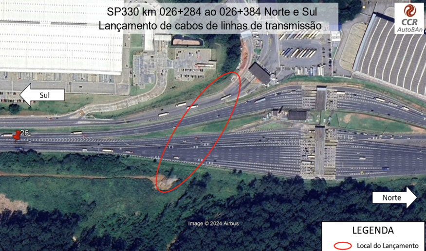 A CCR AutoBAn prevê apoiar mais um lançamento de cabos de linhas de transmissão do km 26+284 ao km 26+384 da Rodovia Anhanguera, São Paulo, no próximo domingo, dia 08 de setembro, das 7h às 12h com operação comboio para paralização total do tráfego por aproximadamente 30 minutos em ambos os sentidos simultaneamente.