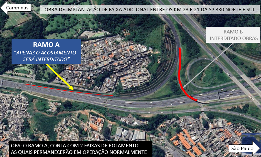 Para que sejam feitas todas as adaptações, a concessionária está interditando a alça de acesso da saída do Rodoanel Mário Covas (SP-021), Ramo B, pista externa para a Anhanguera com destino a São Paulo. Neste trecho de 1 quilometro serão realizadas obras de alargamento.