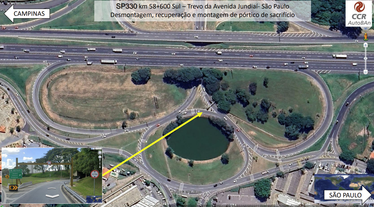 A CCR AutoBAn irá realizar manutenção no limitador de altura instalado no trevo de Jundiaí, na Rodovia Anhanguera (SP-330), km 58, sentido sul (capital). O dispositivo será retirado neste sábado, dia 23/11, para reparos estruturais e, posteriormente, recolocado, até dia 22/12.