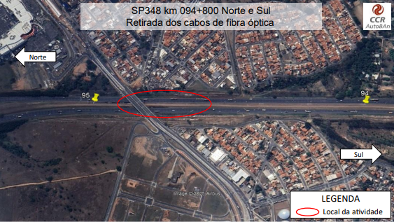 A CCR AutoBAn prevê apoiar a operação de retirada dos cabos de fibra óptica da Rodovia dos Bandeirantes, km 94+800, Campinas, no próximo domingo, dia 16 de fevereiro.