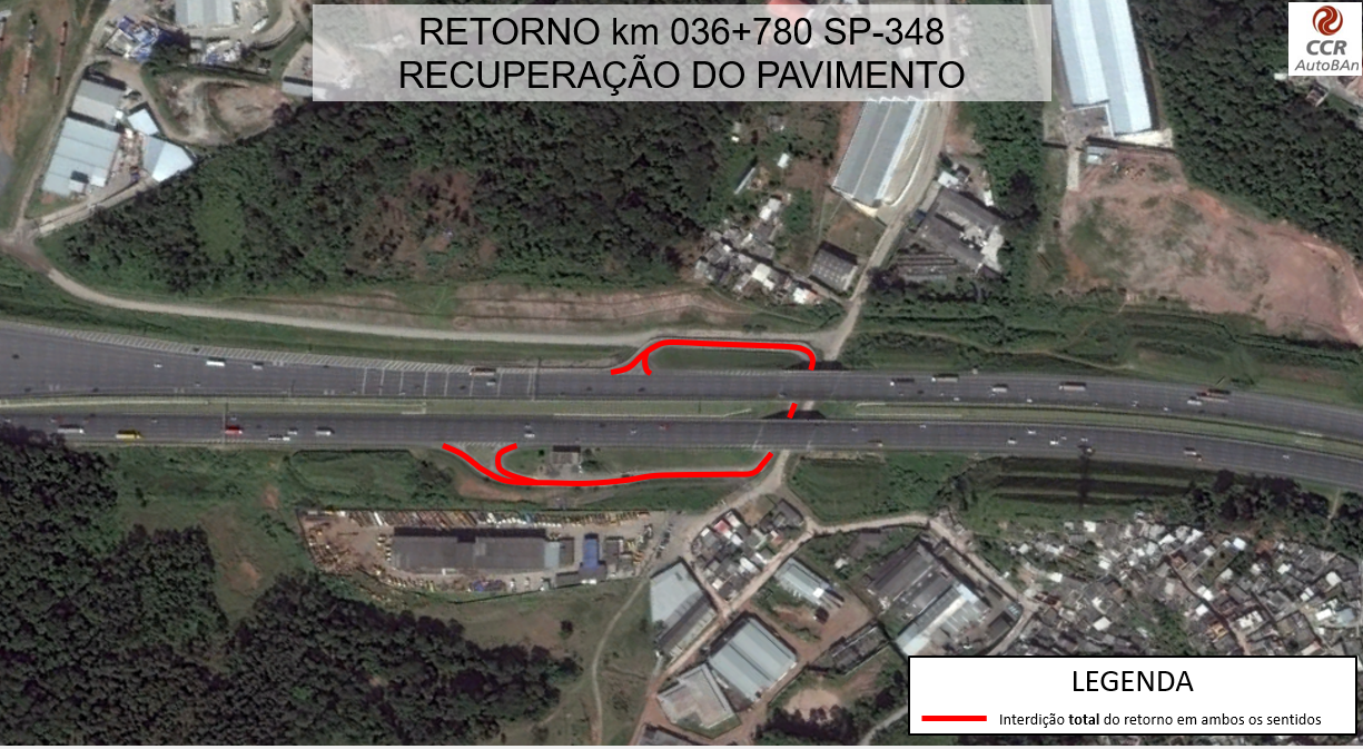 A CCR AutoBAn irá interditar entre os dias 05 e 06 de maio, das 22h às 5h, o dispositivo do km 036+780, da Rodovia dos Bandeirantes, em Caieiras, nos dois sentidos. Durante a intervenção, os veículos que utilizariam a alça de retorno sentido Sul deverão realizar o retorno no KM 46, e para os motoristas que trafegam pelo sentido norte, o retorno será no km 016.