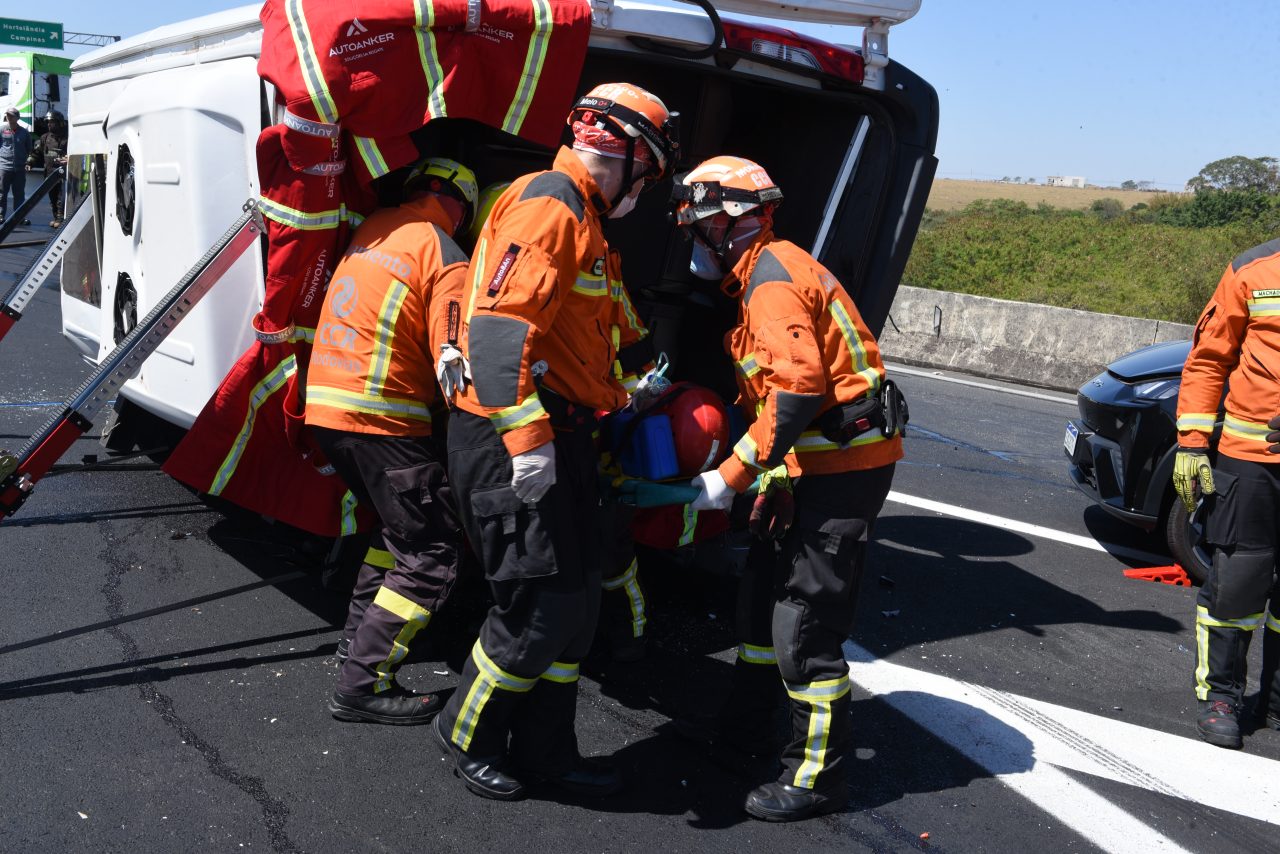 Um simulado de acidente envolvendo diversos veículos e múltiplas vítimas foi promovido hoje (10/09) pela Autoban, uma empresa Motiva, no km 104 da Rodovia dos Bandeirantes, em Hortolândia. O objetivo do treinamento foi promover a integração entre os profissionais que realizam atendimentos de emergência nas rodovias e aperfeiçoar o trabalho das equipes. O simulado teve o apoio da ARTESP (Agência de Transporte do Estado de São Paulo).