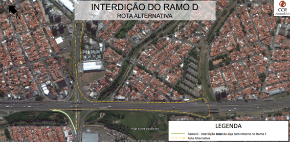 A execução dos trabalhos ocorrerá na noite de hoje, dia 19/09, das 22h às 5h. A alternativa para o motorista que precisa acessar à Avenida John Boy Dunlop será continuar pela Rodovia Anhanguera até o dispositivo do km 95+540 e realizar o retorno.
