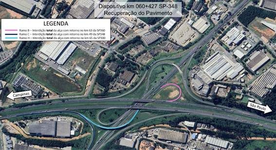 Para realização da melhoria, será necessário a interdição total do dispositivo, e o motorista terá como alternativa de retorno no km 46, para quem está no sentido norte (interior) e no km 24, Rodoanel, para quem segue sentido sul (capital).