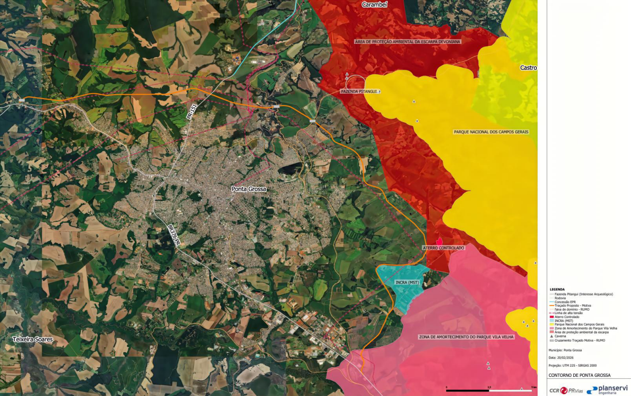 O traçado da Motiva Paraná foi readequado após sugestões de entidades e não interfere no funcionamento de áreas da Fazenda Escola da UEPG, Exército, da Empresa Brasileira de Pesquisa Agropecuária (Embrapa), do assentamento Emiliano Zapata, vinculado ao Incra, e de loteamentos residenciais, como o Alphaville.