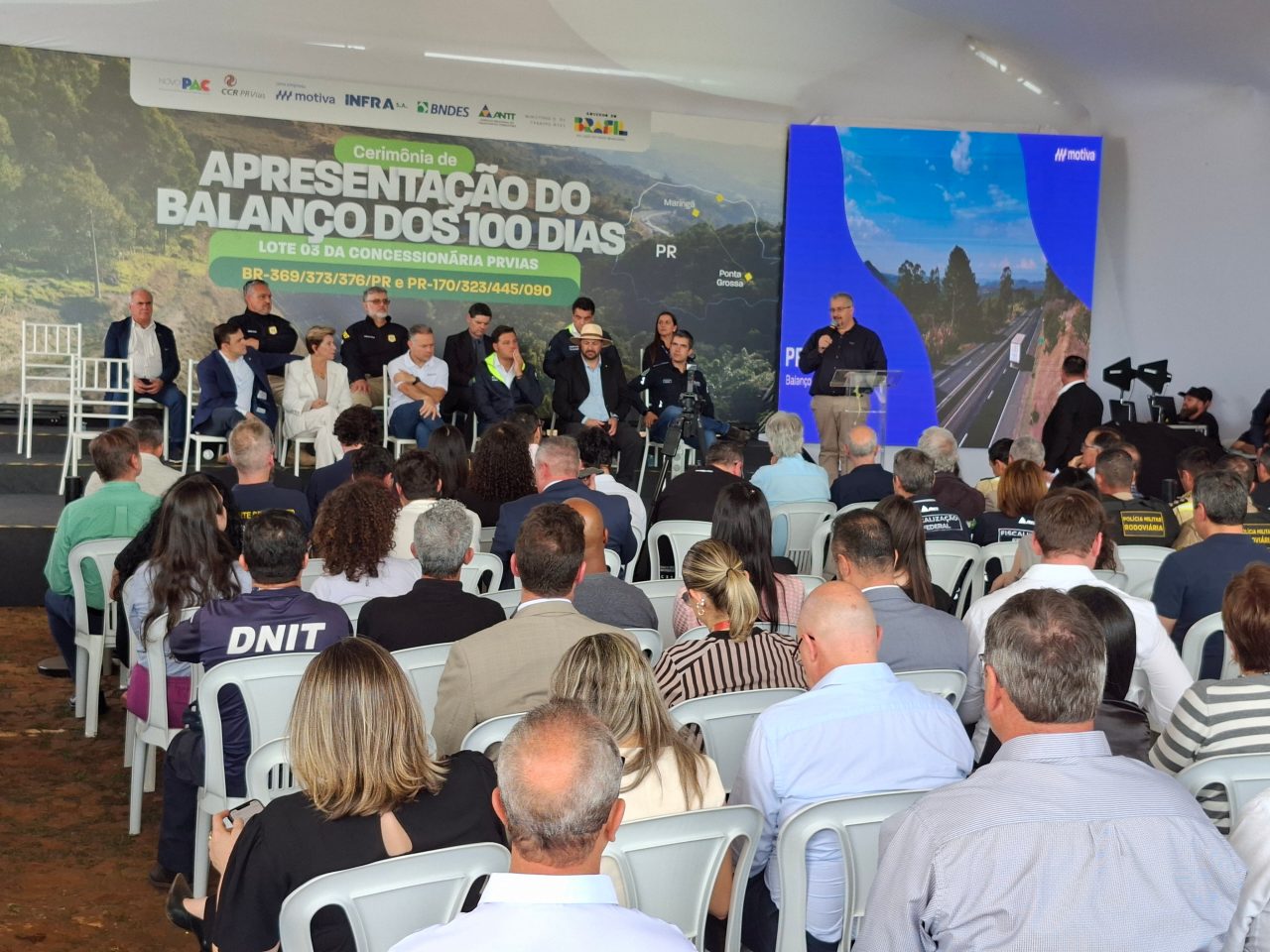 A PRVias, uma empresa da Motiva, apresentou na manhã nesta quarta-feira (3) os resultados do balanço do Plano dos 100 Dias da concessão do Lote 3 do Paraná. O evento, realizado no Parque Estadual Vila Velha (Ponta Grossa), contou com a presença do ministro Renan Filho e do diretor-geral da ANTT, Guilherme Sampaio.