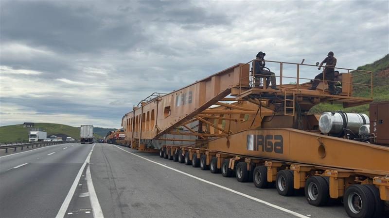 O conjunto transportador com 106 metros de comprimento, mais de 6 metros de largura e peso total de 647 toneladas, segue em deslocamento pela Via Dutra (BR-116) rumo ao Porto de Itaguaí (RJ). A continuidade da operação, que conta com escolta dedicada e planejamento especial da concessionária e da Polícia Rodoviária Federal, ocorrerá nesta quarta-feira, 07 de janeiro, a partir das 9h, no trecho entre o km 299 (trevo de Bulhões) e o km 282, onde permanecerá estacionada até novo deslocamento.