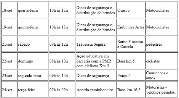 Programação da Semana Nacional do Trânsito CCR RodoAnel