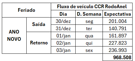 Para auxiliar no planejamento das viagens, a concessionária destaca os períodos de maior fluxo previstos: