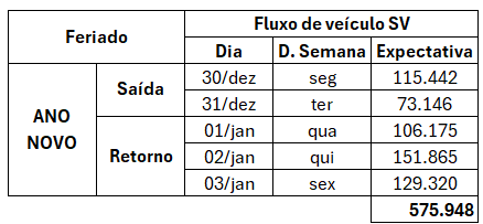 Para auxiliar no planejamento das viagens, a concessionária destaca os períodos de maior fluxo previstos: