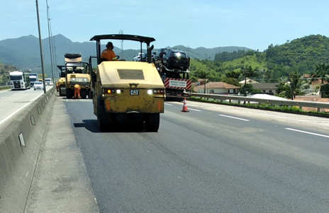 Entre Capivari de Baixo e Tubarão: manutenção de pavimento e camada de reforço, entre os kms 329 e 343 – pista sentido sul;