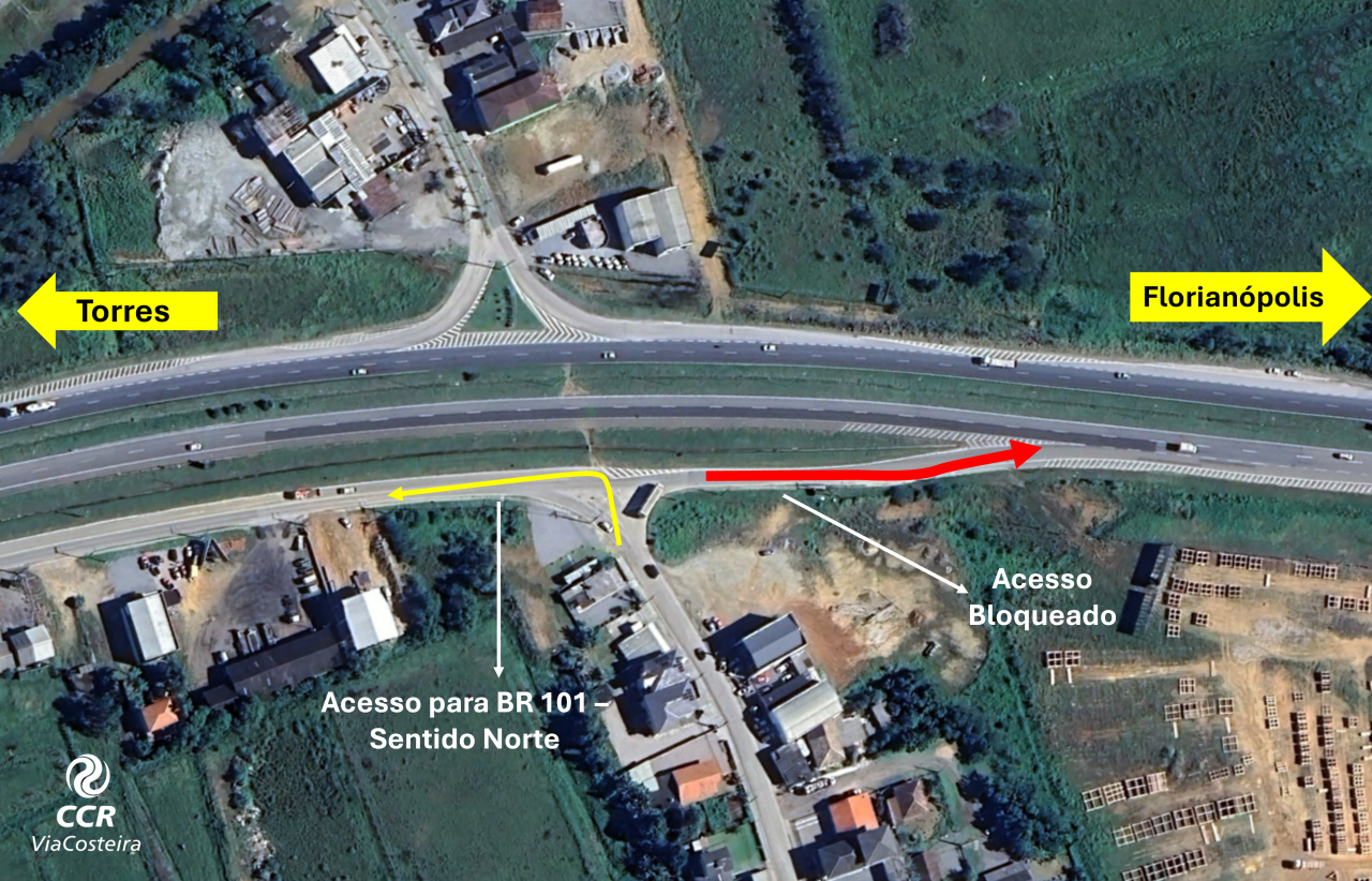 Como alternativa para acessar a rodovia, os motoristas podem seguir pela pista marginal sul até o km 254 ou 251 (sentido Porto Alegre), quando deverão utilizar o acesso de retorno para à BR-101.