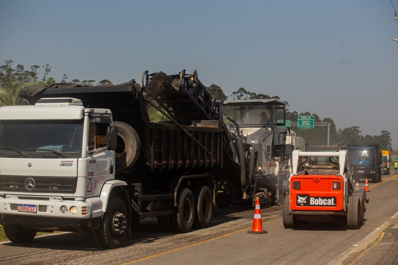 Içara: restauração de pavimento entre os kms 385 e 382 – sentido norte, e microrevestimento entre os kms 380 e 387 – sentido sul;