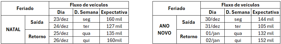 Expectativa de Tráfego durante o Natal e Ano Novo