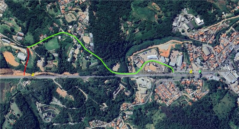 Rua Padre Const. Amstaldem (em vermelho) interditada para avanço de obras. Como rota alternativa, os motoristas devem utilizar a Estrada Romão Dias de Goes (em verde)