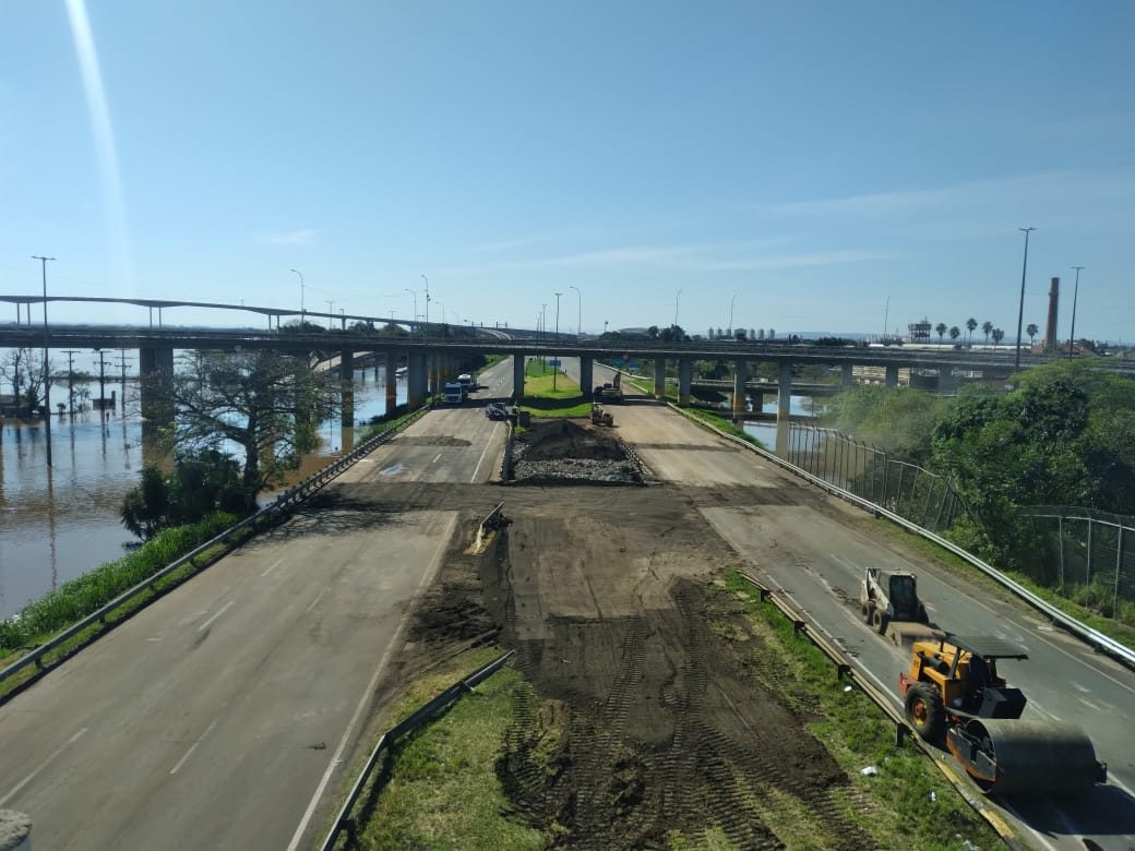 Nesta terça (7), a CCR ViaSul concluiu as ações emergenciais de recuperação do pavimento na região do km 96 da Freeway, em Porto Alegre. As equipes vinham atuando no local desde o último sábado quando o ponto foi atingido pelo alto volume de água registrado nas enchentes que atingem o Rio Grande do Sul.
