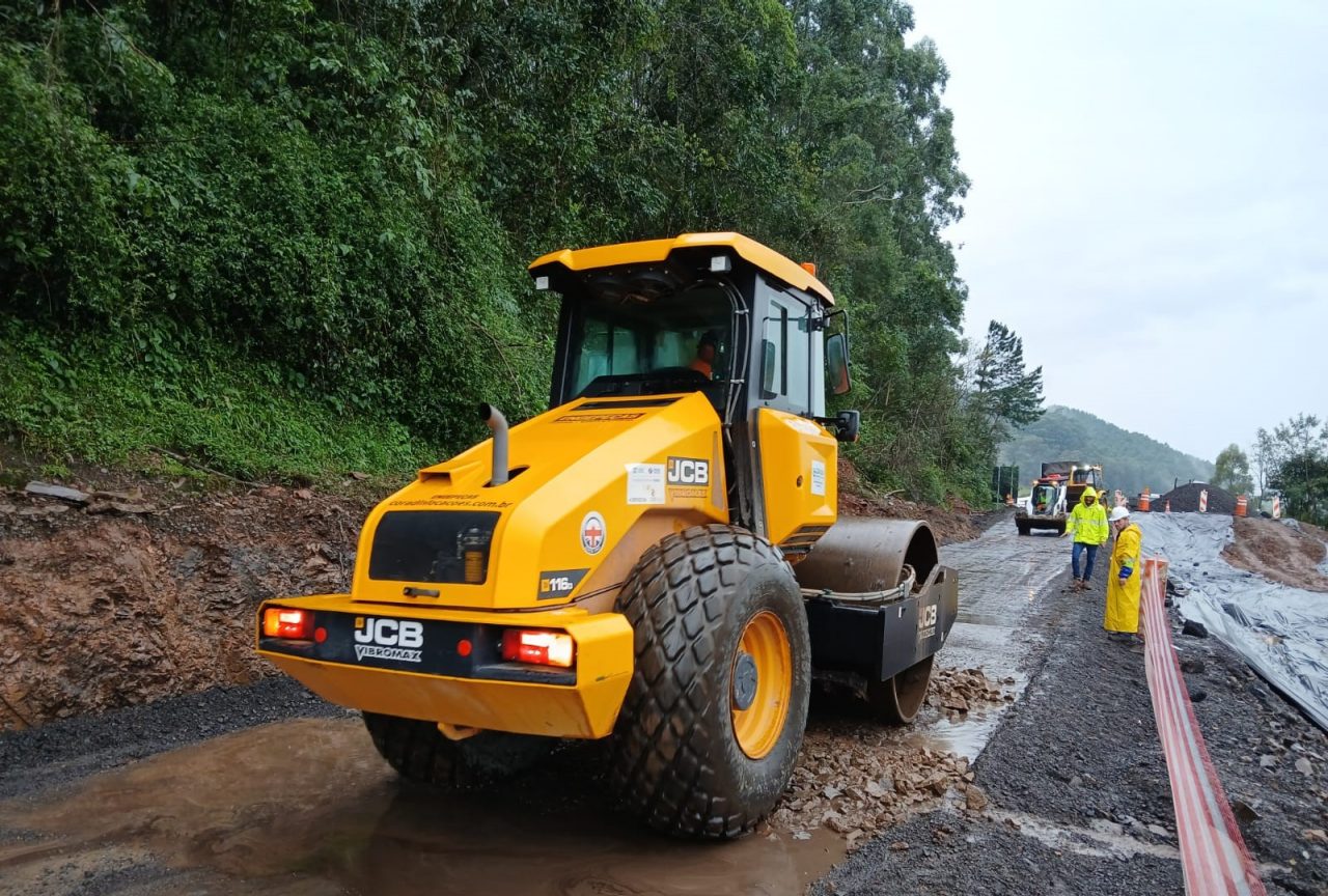 Somente neste segmento, estão trabalhando cerca de 30 pessoas, 15 caminhões, três rolos compactadores, uma motoniveladora, uma retroescavadeira, um caminhão espargidor e outro caminhão para sinalização. Também, a empresa lembra que a manutenção da via é feita durante três vezes na semana.