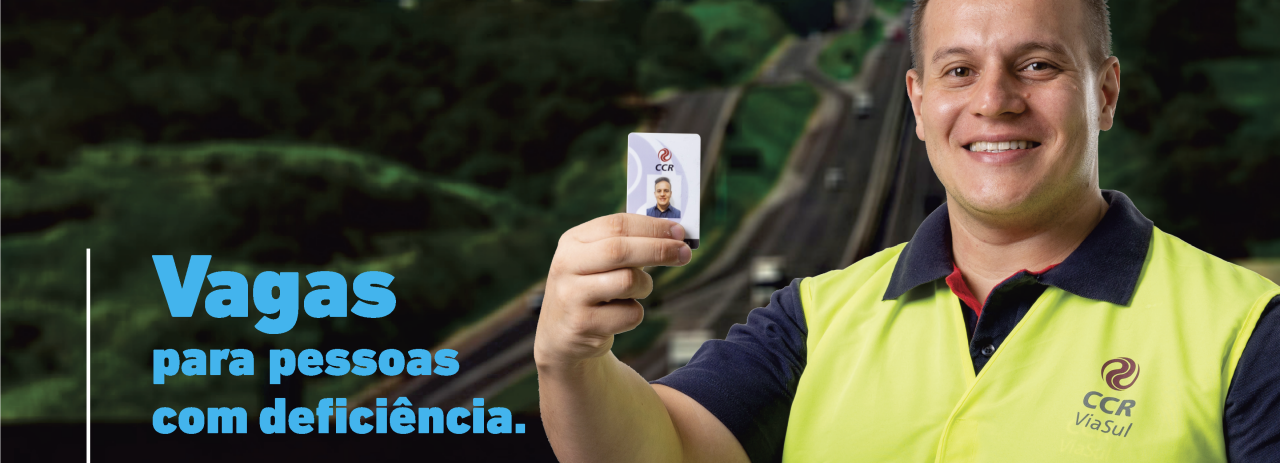 Nesta semana, a CCR ViaSul divulga a abertura de vagas exclusivas para profissionais PcDs, interessados em trabalhar na Concessionária, nas funções de operador de pedágio (nos municípios de Santo Antônio da Patrulha, Gravataí, Terra de Areia, Montenegro, Paverama, Fontoura Xavier e Tio Hugo) e de balança ( Montenegro e Fontoura Xavier).
