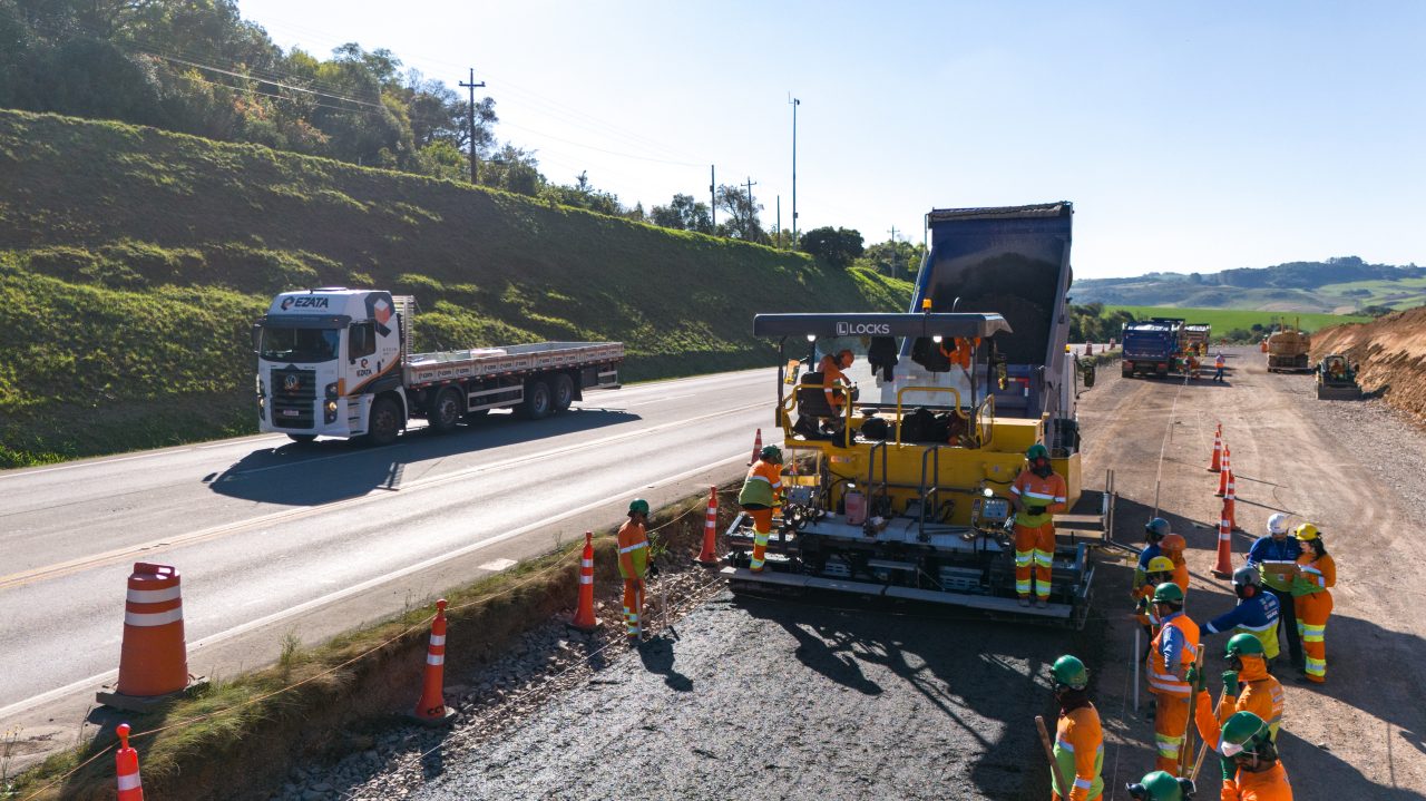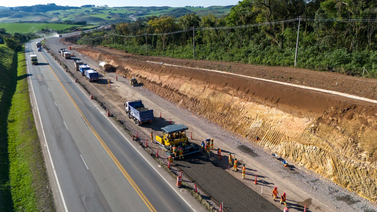 Em nova atualização do andamento das obras de duplicação da BR-386/RS no trecho entre Soledade Fontoura e Xavier, do km 245,3 ao km 270,9, a CCR ViaSul informa que trabalha nas camadas iniciais da pavimentação da nova pista. Atualmente, as atividades estão concentradas entre os kms 255 e 257, em Soledade.