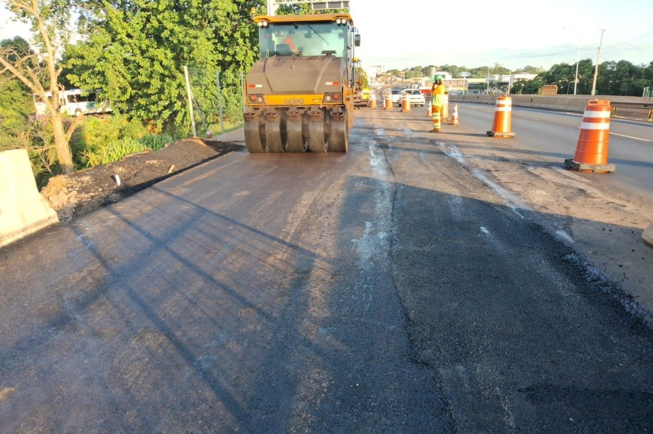 A ação se deve à evolução dos serviços realizados sob a estrutura, onde são feitos os trabalhos de reforço do viaduto em complemento às obras de implantação das faixas adicionais.