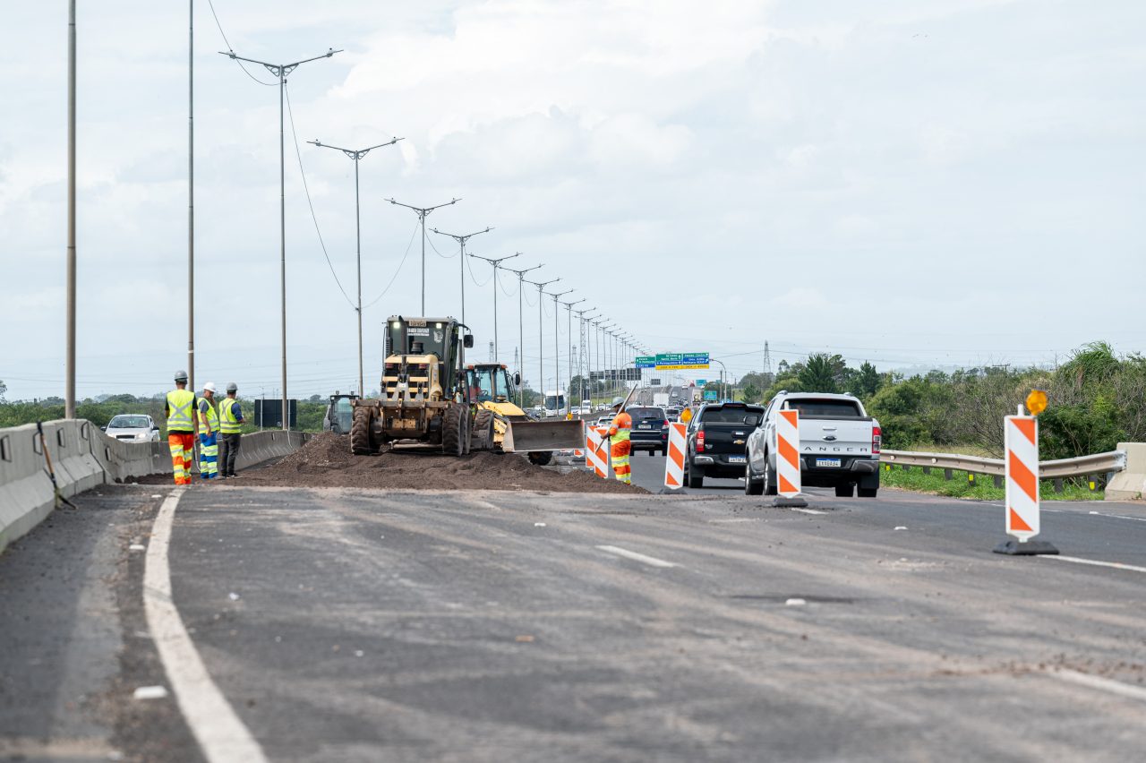 Defensa metálica, limpeza de drenagem, barreira de concreto e acostamento, sinalização vertical, sinalização horizontal, roçada e coleta de lixo entre Porto Alegre e Sapucaia do Sul (km 0 e 22) - ambos os sentidos com interdição de faixa.