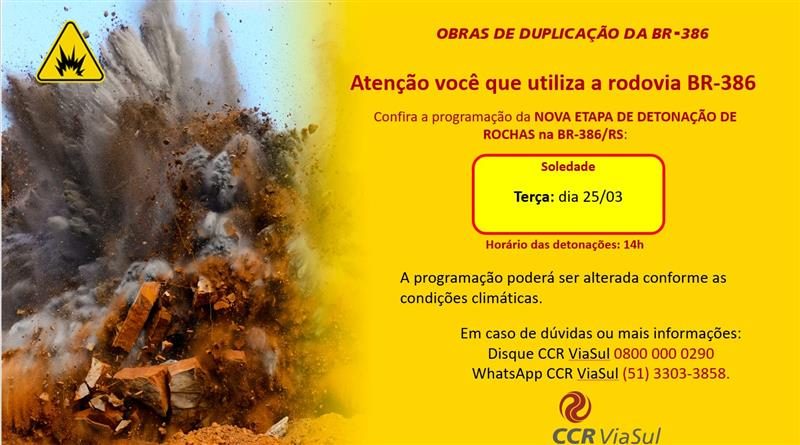 Para garantir a segurança dos usuários que utilizam a rodovia, durante as explosões, a rodovia é totalmente bloqueada por até, no máximo, 1 hora nas proximidades desses locais. Após a operação, as equipes da Concessionária realizam a limpeza da pista antes de liberar ao tráfego.