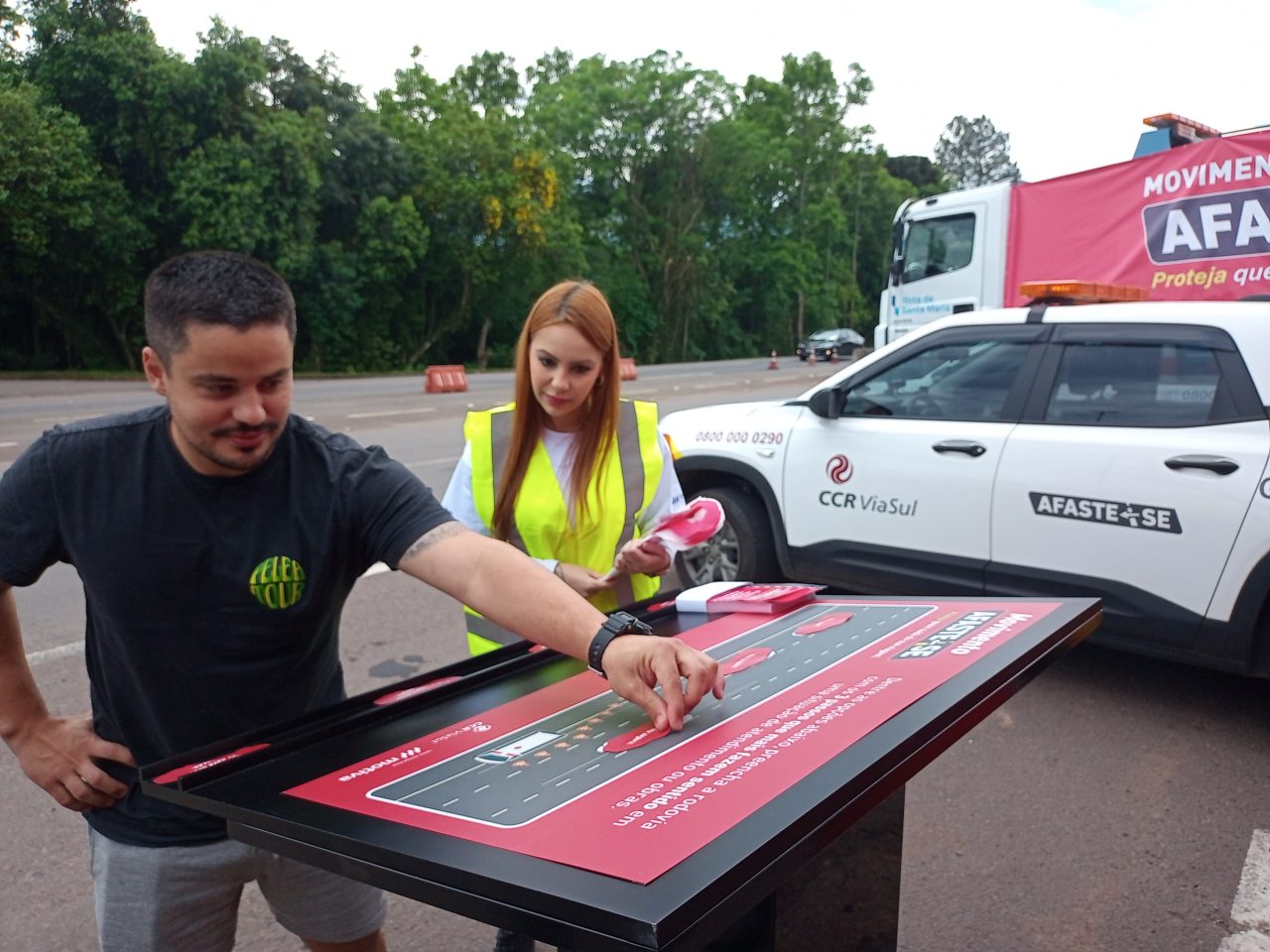 Em uma iniciativa inédita promovida pelas concessionárias de rodovias do Rio Grande do Sul, a ViaSul, uma empresa Motiva, e a Rota de Santa Maria, em parceria com a Polícia Rodoviária Estadual (PRE/RS), realizaram na manhã desta sexta (17) uma ação de conscientização sobre o Movimento Afaste-se junto aos motoristas que passaram pela região do km 99 da RSC-287, em Santa Cruz do Sul (RS), com o tema ‘Proteja quem cuida da sua viagem’.